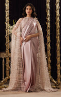 Witness the majesty of our net embroidered cape and blouse with a saree that sparkles with cut glass beads, sequins, and crystals. This breath-taking ensemble offers a contemporary twist to traditional elegance, making it the perfect choice for those who desire a touch of sophistication.