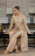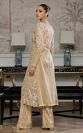 Make a glamorous statement in our Organza Embroidered Dress with Trouser ensemble, designed to captivate with its ornate detailing. The dress features delicate cutwork accents and is embellished with pearls and sequins for a sparkling finish that is sure to turn heads.