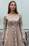 Embody opulence and creativity with the exquisite organza embroidered maxi dress, lavishly crafted with a pearl belt and enchanting tassels. This captivating masterpiece is designed for those with a discerning eye for intricate fashion details. The scalloped borders on the bottom lend a hint of sophistication.