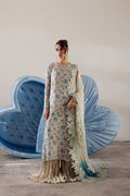 A beautifully designed chiffon long shirt, featuring a blend of embroidery and delicate prints, paired with a crushed raw silk trouser for an elegant finish. The look is completed with a two-tone chiffon dupatta, adorned with scalloped embroidered borders.