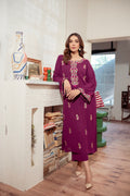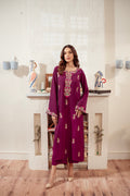 A traditional ensemble which is cut from luxurious crepe fabric, with an intricately embellished neckline and sleeves. Delicate booties adorn the shirt along with a delicate border on the sleeves.