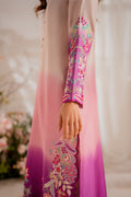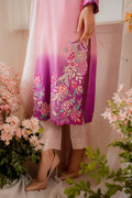 Elevate your festive look with the Dua dress, featuring floral motifs on a blush pink base with purple and mint green accents. The buttoned neckline and modern cut with color-blocking enhances its charm. Paired with a straight pants, this ensemble epitomizes festive elegance.