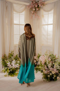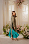 A vibrant ash silver grey ensemble features an elongated shirt adorned with our signature Vintage style birdie embroidery, with nature-inspired floral motifs. It features beautiful 3D motifs and intricate thread work with hints of sliver, light gold and tilla. This gorgeous shirt is paired with tonal trouser making it a classic timeless piece.
