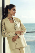 Formal ivory hand-embroidered power suit, intricately embroidered with zardozi work, swarovski crystals, chain-stone & beadwork. Paired with matching pants to complete the look.