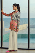 Formal digital printed jacket inspired by flora and geometric patterns, with swarovski crystals and marble beadwork.You may also add a white Korean silk jumpsuit to complete the look.