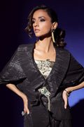 Formal Shrug, Intricately Hand Embroidered Floral and Geometric Motifs With Pearl, Sequin and Crystal Work. Paired With Culottes And Emrboidered Inner To Complete The Look.
