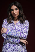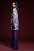 Formal Jacket Style Digital Prited Shirt Featuring Geometric Hala Tile Motif With Heavy Hand Embroidered Cuffs. Adorned With Sequin, Pearl And Bead Work With Button Details.