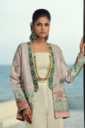 Formal digital printed jacket inspired by Mughal garden featuring flora and fauna, with swarovski crystals, sequin & applique work, and heavily embroidered collar.