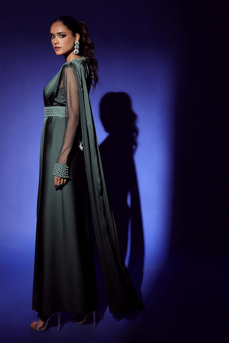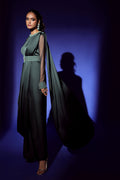 Our Signature Saree Drape Comes In A Beautiful Bottle Green Shade Perfect For A Formal Night- Out.