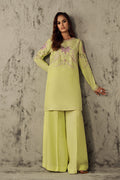 Pistachio Green Formal Shalwar Kameez Featuring Intricate Hand Embroidery Of Resham Threadwork, Cystals, Beads And Applique Work Details. Pair It With Pure Chiffon Tie And Dye Dupatta (Optional) To Complete The Look.