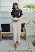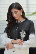 This bold black-and-white combination of the ombre effect will turn heads, front open-style formal shirt features contemporary formal hand embroidery of zardozi, rhinestone, sequin, and beadwork on the neckline and buttons, featurig our signature zebra embroidered motif.