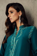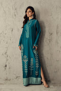 Teal Blue Pure Silk Formal Kaftan. Intricately Hand Embroidered With Pure Resham Thread And Cutwork Featuring Applique Floral Motifs And Intricate Hand Embellishment.