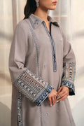 Introducing the enchanting €˜Zohras - A nostalgic winter masterpiece in steel grey, where the cold embrace of the season meets intricate geometric embroidery. Each stitch whispers timeless elegance, while delicate running floral motifs softly trace the shirtss silhouette, evoking naturess quiet grace as winter settles in. The collar neckline, adorned with finely detailed geometric patterns, adds a touch of refinement, like a cherished memory woven into the fabric itself.