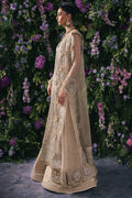 Complemented by tonal shararas and a lavishly embellished organza dupatta with exquisitely detailed borders of pearls and sitara, this ensemble promises endless possibilities for bespoke sophistication, perfect for celebrating life's most treasured moment.