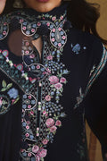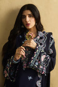 The neckline and hem feature enchanting embroidered festoons that swirl gracefully, exuding a sense of feminine allure and mystique. Paired with tonal Karandi trousers, Raqs is completed by a lavishly embroidered dupatta, adorned with delicate floral motifs on the pallu and scalloped borders, adding to its wintry charm. This ethereal composition brings forth a vision of sublime beauty, perfect for the quiet luxury and warmth of winter days and starlit evenings.