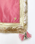 Motia - A Classic tissue Gharara set includes flared classic gharara with knee length shirt styled with contrasting dupatta embellished with Gota laces and handmade latkans. Includes: Shirt, Pants, Dupatta Color:..
