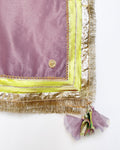 Basanti - A Classic tissue Gharara set includes flared classic gharara with knee length shirt styled with contrasting dupatta embellished with Gota laces and handmade latkans. Includes: Shirt, Pants, Dupatta Color: ..
