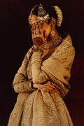 Gul-Bahar is specifically designed for those who donst want to ditch pastels even on their big day. The dress features an enchanting beige peshwaz beautified by intricate embroidery on both the front and the back. The peshwaz, embellished with zardozi, crystals, and gota, is paired with an elegant red silk lehenga. This mesmerizing look is beautifully tied together by a beige organza dupatta featuring heavily embroidered borders highlighted with zardozi and sequins. This overall attire will give you a timeless look and help you leave a lasting impression on your audience.