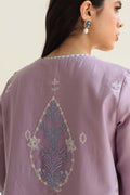 Glamorous charm infuses this mesmerizing ensemble in lavender hue, A contemporary shirt, embellished with enchanting delicate embroidery cascading over the whole attire harmonizes exquisitely with a floral dupatta, creating an irresistible appeal.