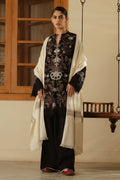 A loose fit short embroidered kurta beautifully crafted with vibrant colored embroideries and paired with a kantha embroidered shawl and a farshi shalwar.