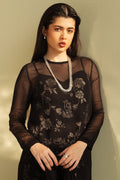 This black outfit combines classic elegance with intricate craftsmanship, creating a look that is both sophisticated and striking.