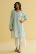 This aqua kurta, crafted in lawn, features vibrant multicolour embroidery and is finished with delicate scalloped detailing along the hem and sleeves.