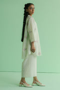 This straight, loose-fit kurta in a soft pistachio green is crafted in lawn and adorned with delicate floral bunch sprays embroidered across the front.