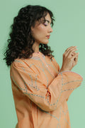This long, loose-fit kurta in a vibrant orange hue is crafted in lawn and adorned with delicate heart-shaped schiffli embroidery all over.