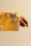 Our short boxy orange kurta has embroidery details on sleeves. This ensemble is paired with a white farshi shalwar for that effortless chic look.