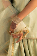 Take the center stage this wedding season by choosing this stunning embroidered aqua outfit.The ensemble features a short aqua shirt with delicate embroidery of zardozi, naqshi, and crystals to create a glitzy look. Motifs of zardozi and resham embroidery on the sleeve make this attire ideal for all kinds of functions this wedding season.The shirt is paired with an aqua lehenga beautified by naqshi, zardozi, and golden applique details. The organza dupatta with enchanting grid borders adds further grace to this attire.