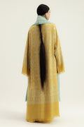 A classic Kashmiri embroidered marina shirt featuring jall embroidery all over the front and back in soft hues of aqua. Paired with a contrasting marina shawl, embroidered on all four sides, this ensemble beautifully combines warmth, tradition, and elegance, perfect for the winter season.