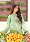 A masterpiece in green - Patina is where timeless tradition meets refined artistry. Crafted from premium lawn, this ensemble features intricate embroidery on the front, back, sleeves, and lace detailing, complemented by a delicate organza cutwork panel. The look is completed with an ethereal embroidered organza dupatta and matching embroidered trousers, creating a silhouette thatss both graceful and unforgettable.