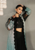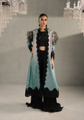 Presenting "MEIRA€�- a universally flattering design that epitomizes sophistication. This metallic, ombre shimmery flowing, front-open jacket captures attention with its intricate craftsmanship and shimmering sequins that add a touch of allure, it is adorned with gleaming sequins that weave their enchanting spell across a sumptuous net canvas, while precious pearls accentuate the ensemble, creating a mesmerizing composition. Layered over exquisitely tailored crushed sharara pants, this glistening vision of beauty is perfect for making a lasting impression with its glamorous allure and timeless elegance.