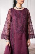 Embrace elegance in our Purple Unstitched 3 Piece Semi-Formal Suit featuring exquisite purple embroidered fabric adorned with Rajjo net shirt, raw silk bottom, along with organza dupatta, all exuding charm with floral cascade embroidery that will elevate your semi-formal wear wardrobe.