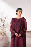Elevate your festive style with this exquisite Maroon Unstitched 3 Piece Embroidered Semi Formal Suit, perfect for a touch of glamour at any event. The intricately embroidered maroon dyed fabric is complemented by Rajjo net, making this shirt a graceful addition with raw silk bottom and organza dupatta . This ensemble exudes paisley opulence and is ideal for semi-formal wear.