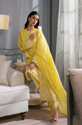 With its warm, golden hue, Golden Bloom is a radiant celebration of elegance and grace. This yellow unstitched suit, crafted from the luxurious Manar fabric, features exquisite embroidery on the front panel, back, and daman, creating a mesmerizing visual appeal. The embroidered dupatta, adorned with pallu and corner detailing, further enhances its regal charm. The suit is perfectly balanced with dyed slip and raw silk bottom, offering both comfort and style.