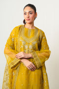 Embrace regal charm with the Luxor Classic in vibrant yellow hues, an embroidered 3-piece suit. Luxurious organza fabric showcases elaborate embroidery on the front, back, and sleeves with dual borders for enhanced appeal. Thoughtfully crafted hand embellishments add elegance. Paired with raw silk trouser, this suit is a radiant choice for festive gatherings.
